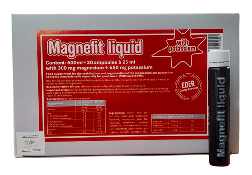 Magnefit liquid - Scen - Magnesio, Potassio e vitamina B6, liquido pronto da bere in ampulle.