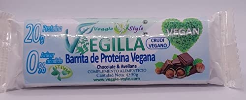 Vegilla - barretta Vegan Proteica 50 gr. - 40% di proteine del pisello e del riso – 100% Vegetale – senza Glutine, Soia, Lattosio, polialcoli - gusto lampone e nocciola ricoperte al cioccolato - SCEN